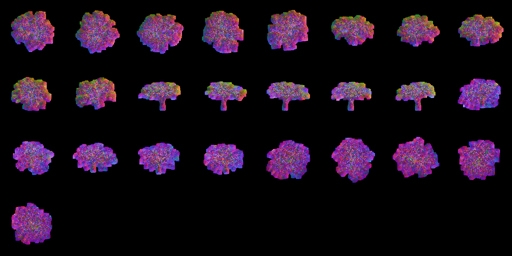 In fact, there is a lot of unused white space at the bottom of these textures. You could increase BB::EQUATOR_STEP to 6 adding five more billboards without increasing the overall imposter texture size. Thats a fifth more imposter textures at almost no cost. Also, make sure your bounding box is as tight on your shape as possible to reduce the whitespace between billboards and maximize the resolution of each billboard with their size limits (256x256 in the example above).